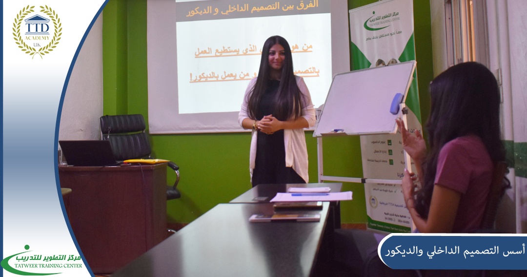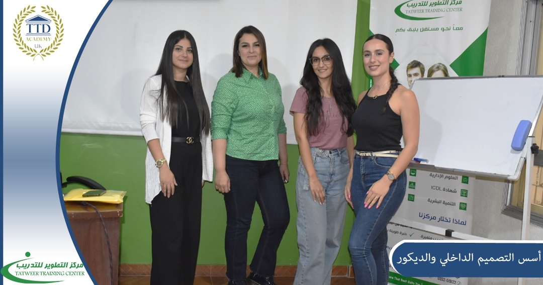 Professional training for all those interested in the field of design and decoration, provided by the certified trainer, Grace Ashi , within the Development Center for Business Administration and Human Resources Development accredited by the British Academy for Education and Training TTDA Academy, at a rate of 9 training hours. It aims to provide the participants in this course with the basic skills to coordinate their place based on the foundations of interior design and decoration, so that the design is free from mistakes that non-specialists can make, and then they are successfully graduated from the Development Center for Business Administration Training and Human Resources Development according to the standards of the British Academy for Education and Training TTDA Academy