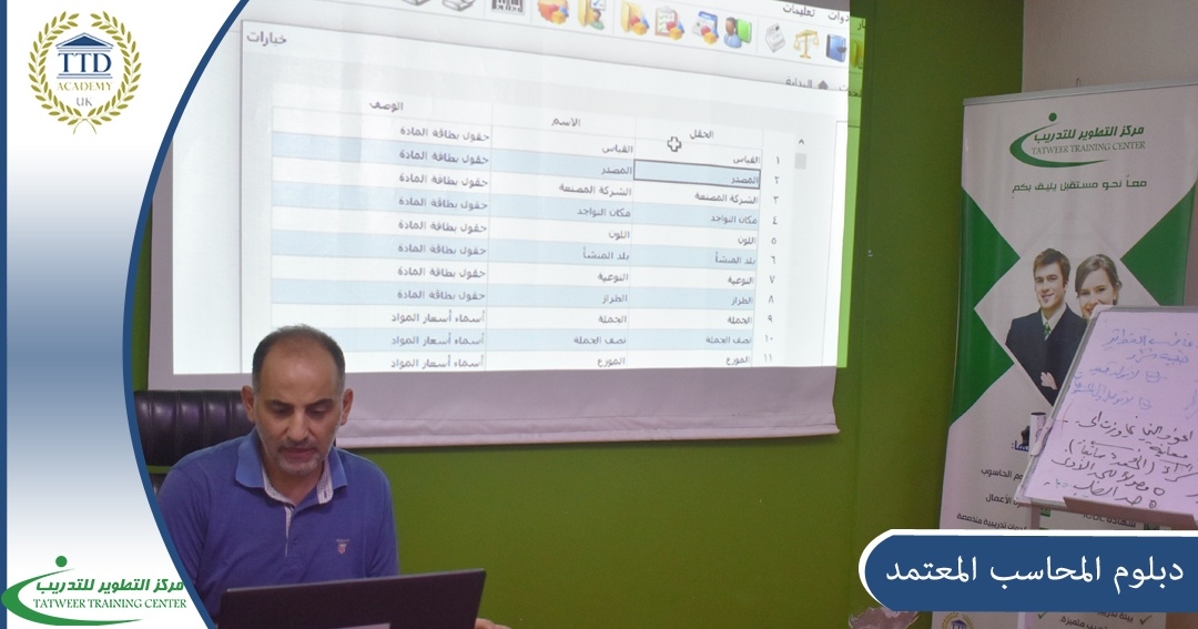 A very important professional diploma for all those interested in working in the field of accounting presents by the certified trainer Hashem Kayali within the Development Center for Business Administration Training and Human Resources Development accredited by the British Academy for Education and Training TTDA Academy on 21/6/2022 at a rate of 50 training hours . This course helps our distinguished students in the practical aspect of accounting, and introduces them to the basics of financial accounting and the most important accounting and warehouse programs, accounting science and bookkeeping so that they can successfully graduate from the Development Center for Business Administration Training and Human Resources Development according to the standards of the British Academy for Education and Training TTDA Academy and become qualified to work in major companies in Syria and the USA