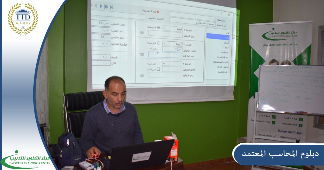 A very important professional diploma for all those interested in working in the field of accounting presents by the certified trainer Hashem Kayali within the Development Center for Business Administration Training and Human Resources Development accredited by the British Academy for Education and Training TTDA Academy on 31/10/2022 at a rate of 50 training hours . This course helps our distinguished students in the practical aspect of accounting, and introduces them to the basics of financial accounting and the most important accounting and warehouse programs, accounting science and bookkeeping so that they can successfully graduate from the Development Center for Business Administration Training and Human Resources Development according to the standards of the British Academy for Education and Training TTDA Academy and become qualified to work in major companies in Syria and the USA