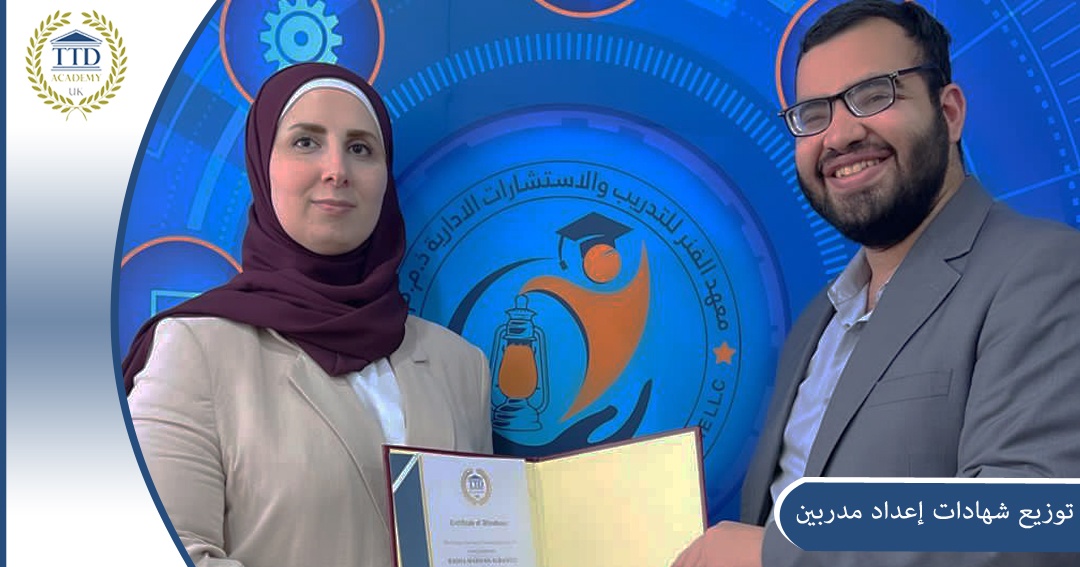 Distribution of academic certificates to a group of distinguished Trainers after completing the training of trainers course at the Al Fanar Training Center in the Emirate of Abu Dhabi, by the certified international trainer Muhammad Bayazid..
