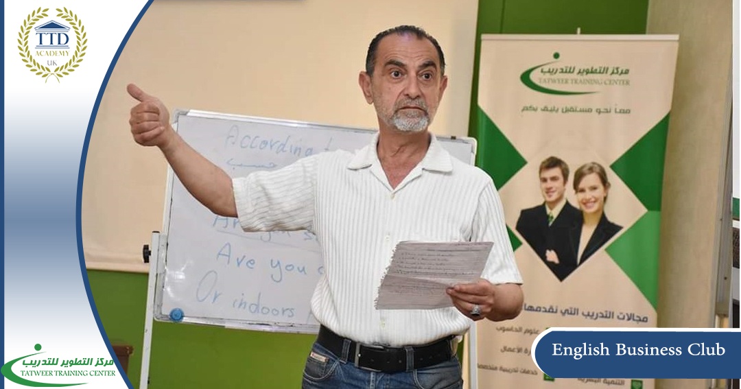 A very distinctive and innovative training based on modern educational methods provided by the certified international trainer Hassan Dama to whom seeks to develop and speak the English language fluently as if he lives in a European country, within the Development Center for Business Administration Training and Human Resources Development accredited by the British Academy for Teaching and Training TTDA Academy, where it focuses on developing fluent listening and speaking skills in the field of business administration, according to training standards that have been approved internationally, after which a group of distinguished graduates will be successfully graduated from the Development Center for Business Administration Training and Human Resources Development according to the standards of the British Academy for Education and Training TTDA Academy