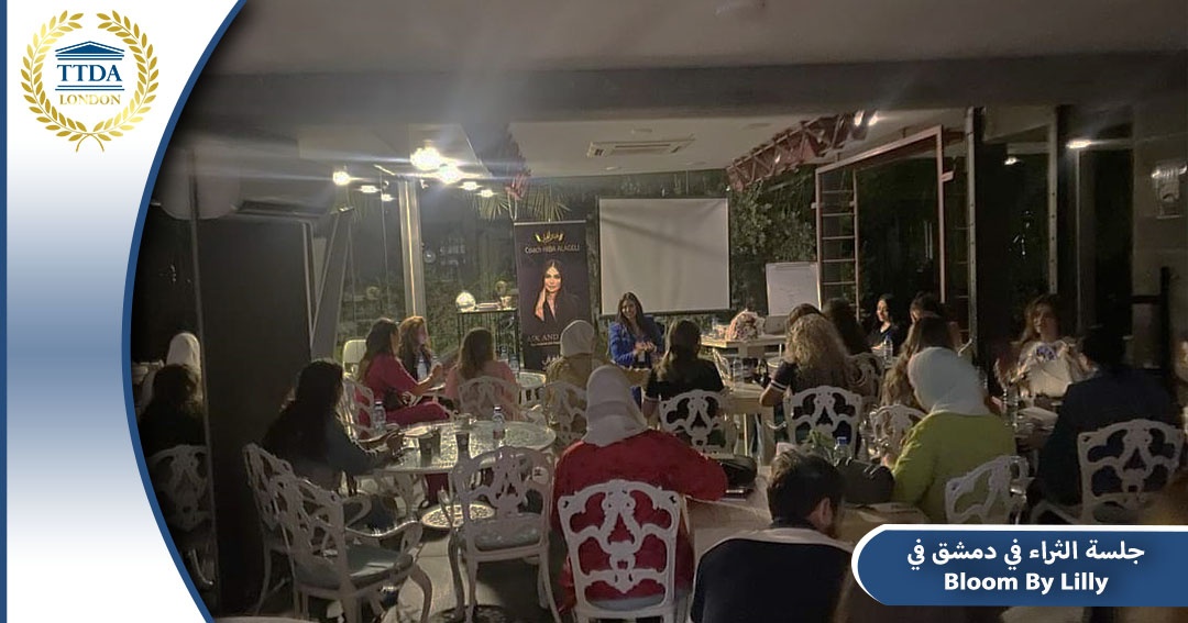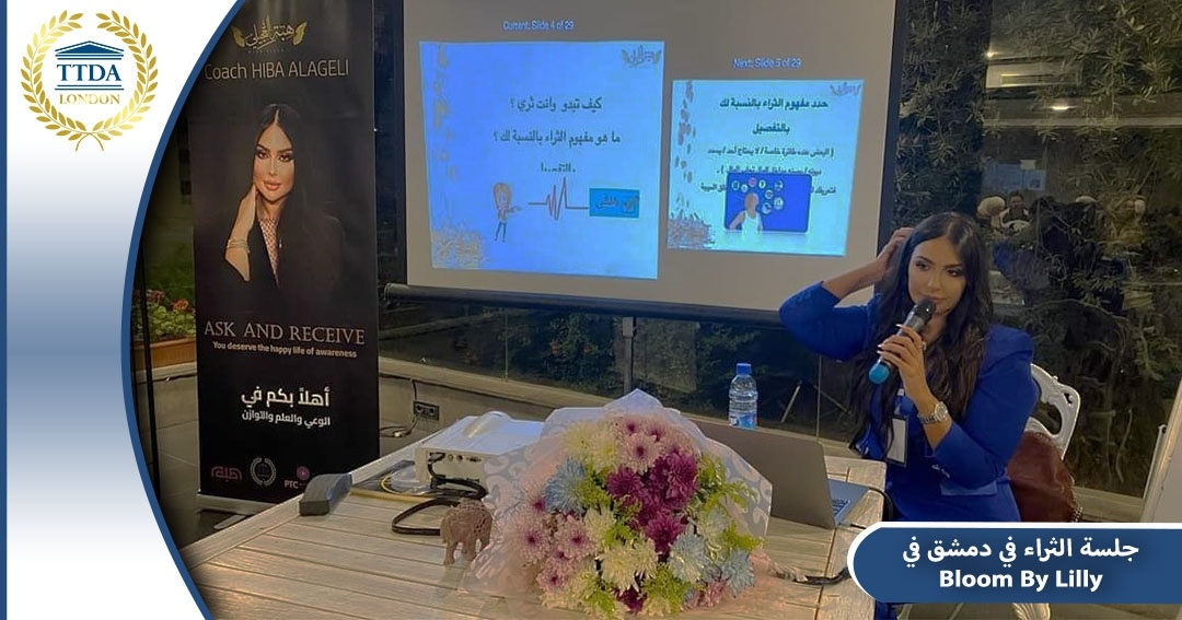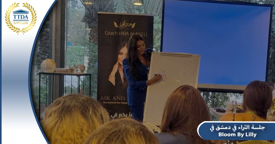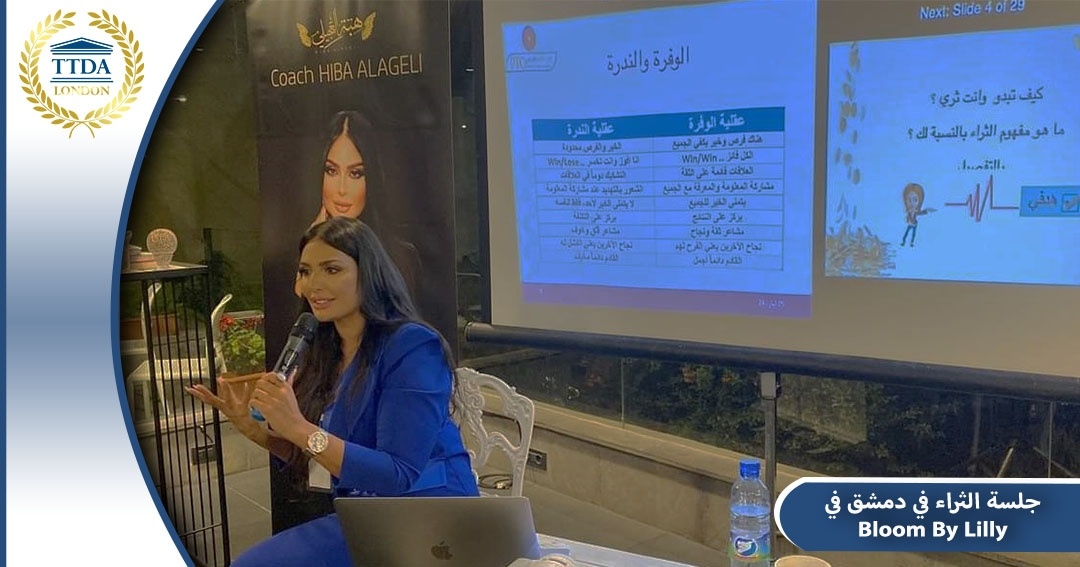 من أجمل محطات الوعي التي قدمتها المدربة الدولية هبة العجيلي المعتمدة من الاكاديمية البريطانية للتدريب والتعليم والتي تميزت بجمال الحضور ورقي الوعي وذلك في دمشق- Bloom by Lilly بتاريخ ٢٧/٩/٢٠٢٤ تحدثت فيها الكوتش هبة بأسلوبها الشيق الرائع على مدى ٥ ساعات عن أسرار الثراء ووعي الفكر وسلام الشعور وتجلي الرفاهية في الارزاق والوجود ودربتهم على عادات ومهارات وسلوكيات الثراء وتبني منهجية الثراء المالي وفق منهج علمي مدروس ينمي في الفرد حس التطور واستحقاق المال بقوة وفعالية. كما تحدثت عن استراتيجيات يومية وتفاصيل حياتية تجعلهم أثرياء.