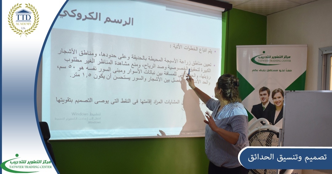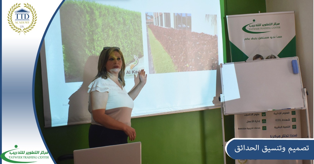 A very distinctive professional skill for all those interested in the field of garden design and landscaping provided by the certified trainer, Dr. Basemah Barhoum, within the Development Center for Business Administration and Human Resources Development accredited by the British Academy for Education and Training ,TTDA Academy, at a rate of 20 training hours aimed at providing participants in this course with the basic skills of landscaping according to the scientific foundations that the engineers follow, from introducing them to the basis used for landscaping and designing gardens, to making initial plans by hand drawing, so that we can draw three-dimensional gardens on one of the most important engineering programs, after reviewing designs and plans made by the participants, so that a group of them will be successfully graduated from the Development Center for Business Administration Training and Human Resources Development according to the standards of the British Academy for Education and Training (TTDA) and become qualified to work in major companies working in this field