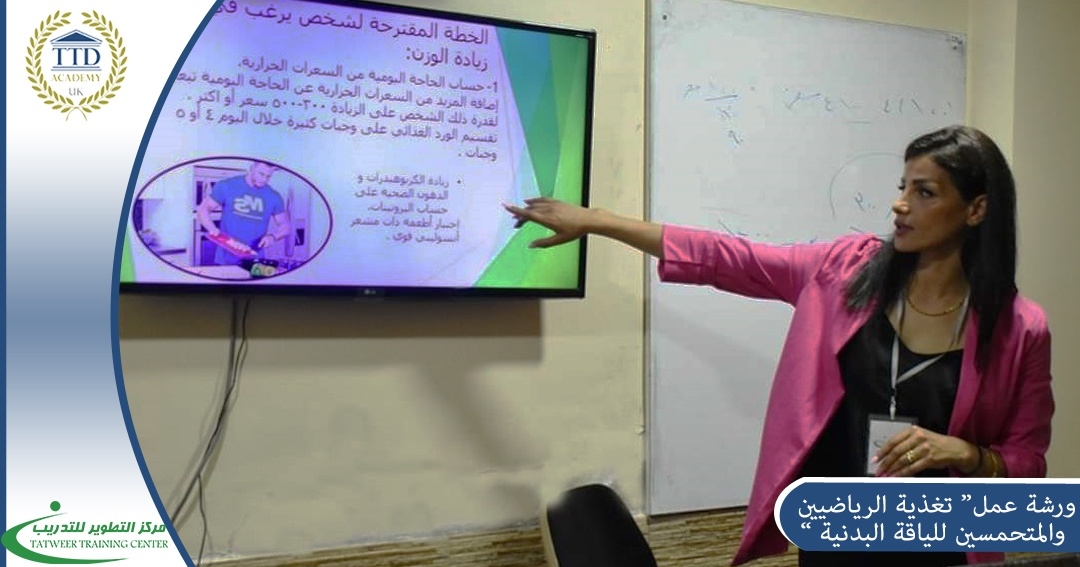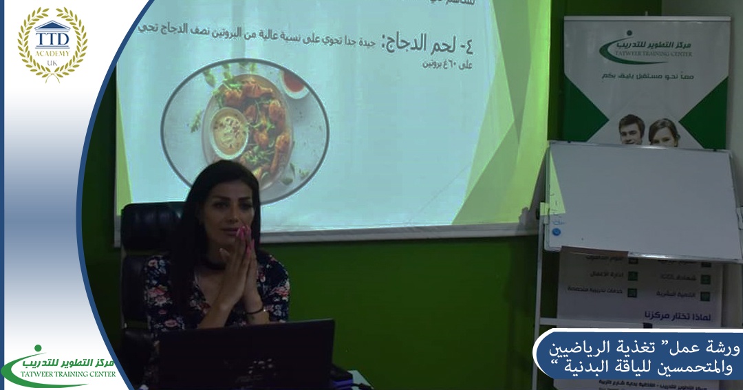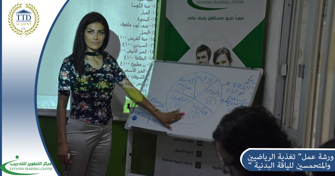 Based on corporate social responsibility and supporting young graduates, the Training Development Center announced, as part of a free development grant, a workshop entitled "Nutrition of Athletes and Fitness Enthusiasts" presented by the certified international trainer, Sola Seifo, over a period of 6 training hours on Saturday 3/6/2023 and Saturday 10/6/2023 The trainees learned about the most important foods in the world of diet, the most important hormones that help in weight gain or loss, and the proposed plans for calculating weights and calories, within the following training axes: