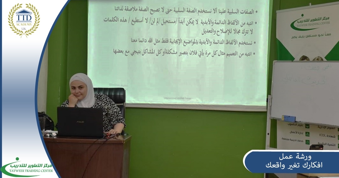 Based on social responsibility, the Training Development Center offers its continuous support to young graduates, and within the free development grant, a free workshop entitled "Your Ideas Change Your Reality" presented by the certified international trainer, Almaali Ali, over 6 training hours on Tuesday 4/7/2023 and Thursday 6/7/ 2023 where trainees learn about the impact of ideas on their lives within the following training axes: